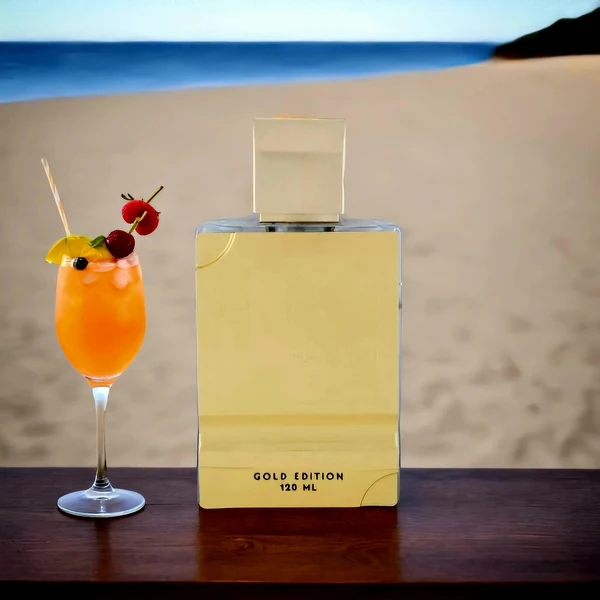 Al Haramain Amber Oud Gold Edition reveals an energetic blend where sparkling citrus meets ripe fruit nuances, creating an invigorating and vibrant aroma.